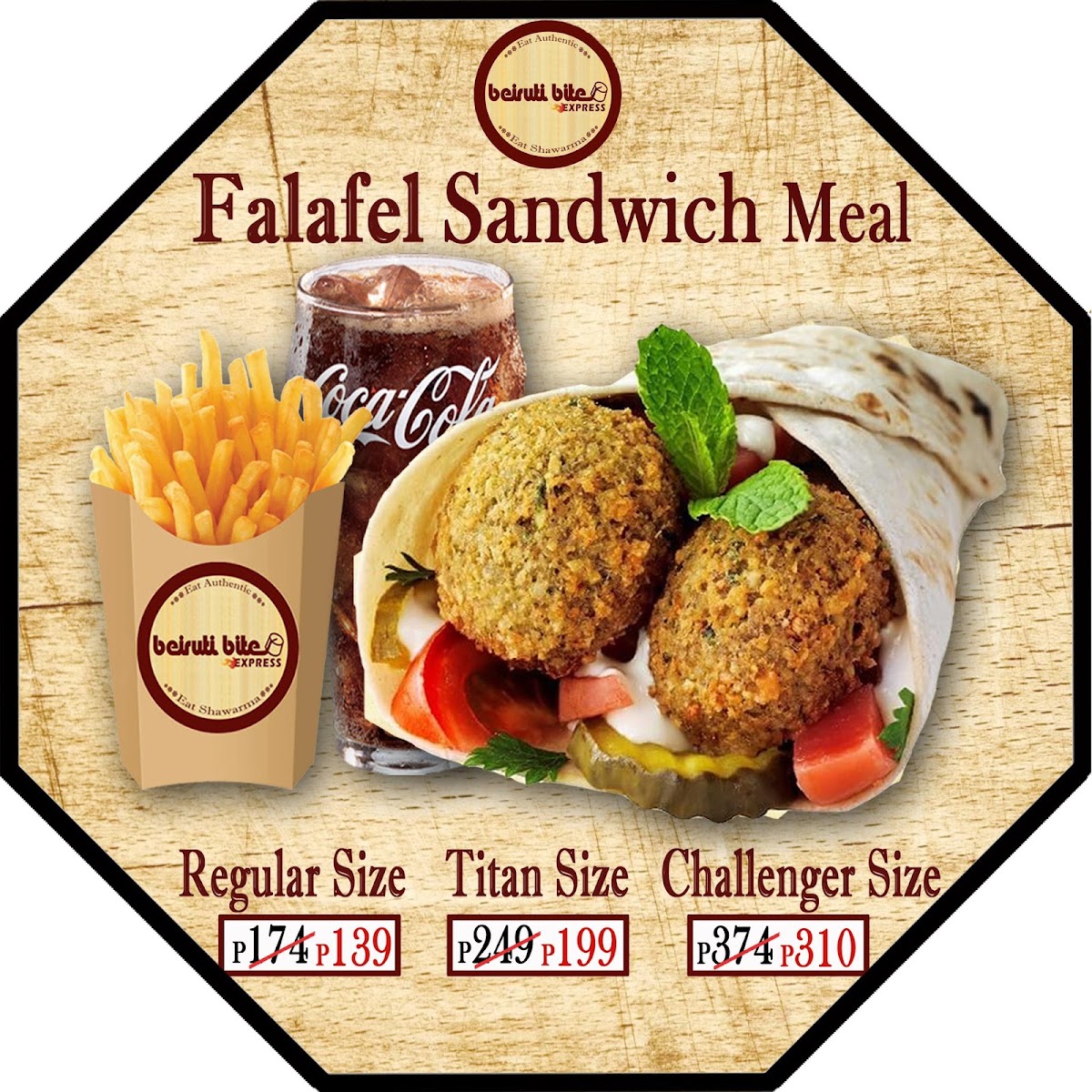 Our authentic deep-fried chickpeas with vegetables & tahini sauce. You can add garlic or hot sauce. One regular size fries & Coke beverage